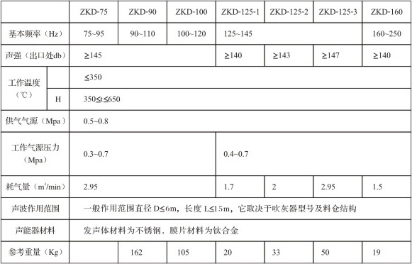 聲波吹灰器以壓縮空氣為動(dòng)力源,膜片在發(fā)聲器諧振腔體內(nèi)振動(dòng),產(chǎn)生特定低頻、高能量聲波,通過擴(kuò)聲筒在被清設(shè)備空氣中諧振傳播,用于結(jié)灰體表面的積灰,使其產(chǎn)生致疲勞而剝落,達(dá)到清除積灰的目的。